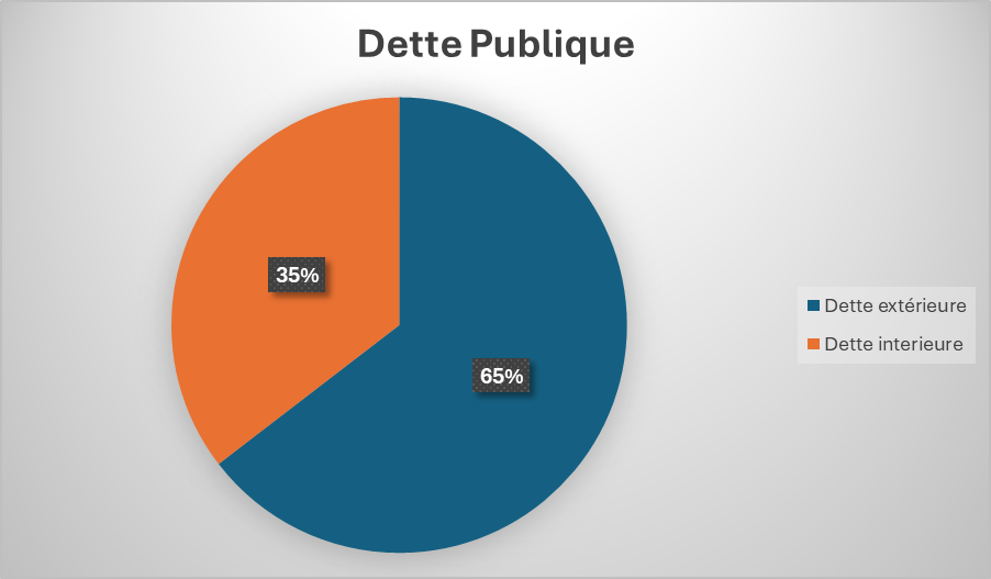 La dette intérieure du Congo représente 35 % de la dette publique totale. Elle reste significative mais moins lourde que la dette extérieure..).
